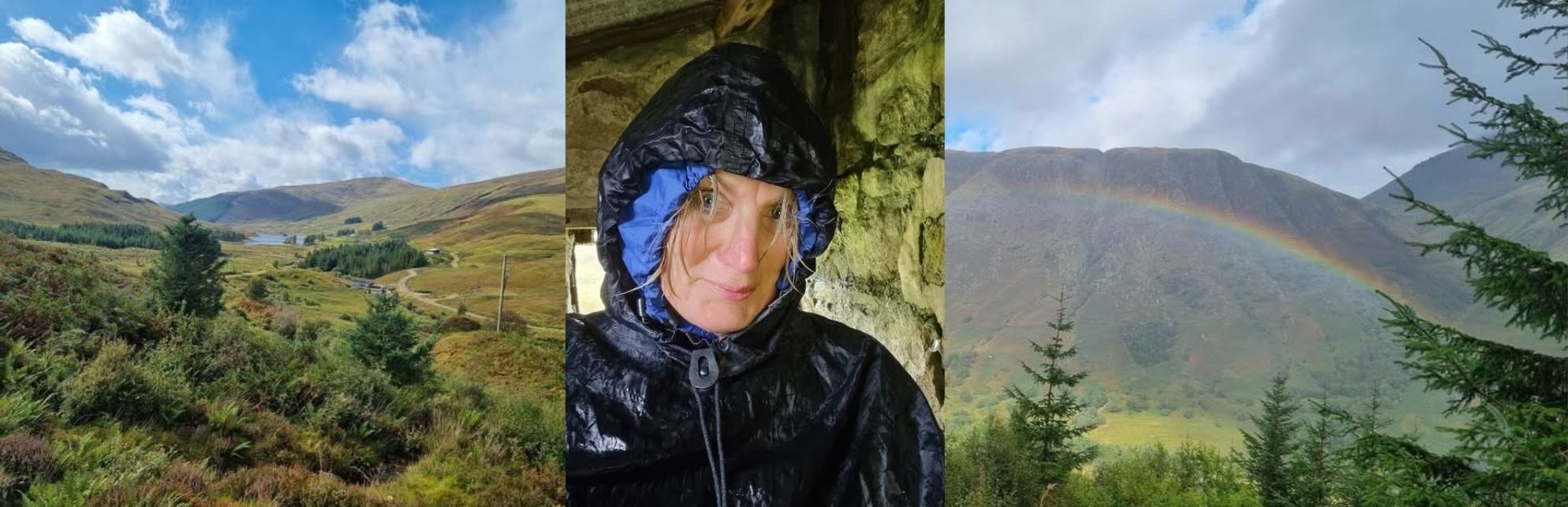 Highland weather can flip in an instant, and of course I’d managed to leave my rain cape in the forwarded bag because I’d grown too used to the sunshine. Brilliant well-done me! Luckily, I still had my waterproof jacket and trousers, though the trousers were only loosely qualified for the kind of rain you get up here.